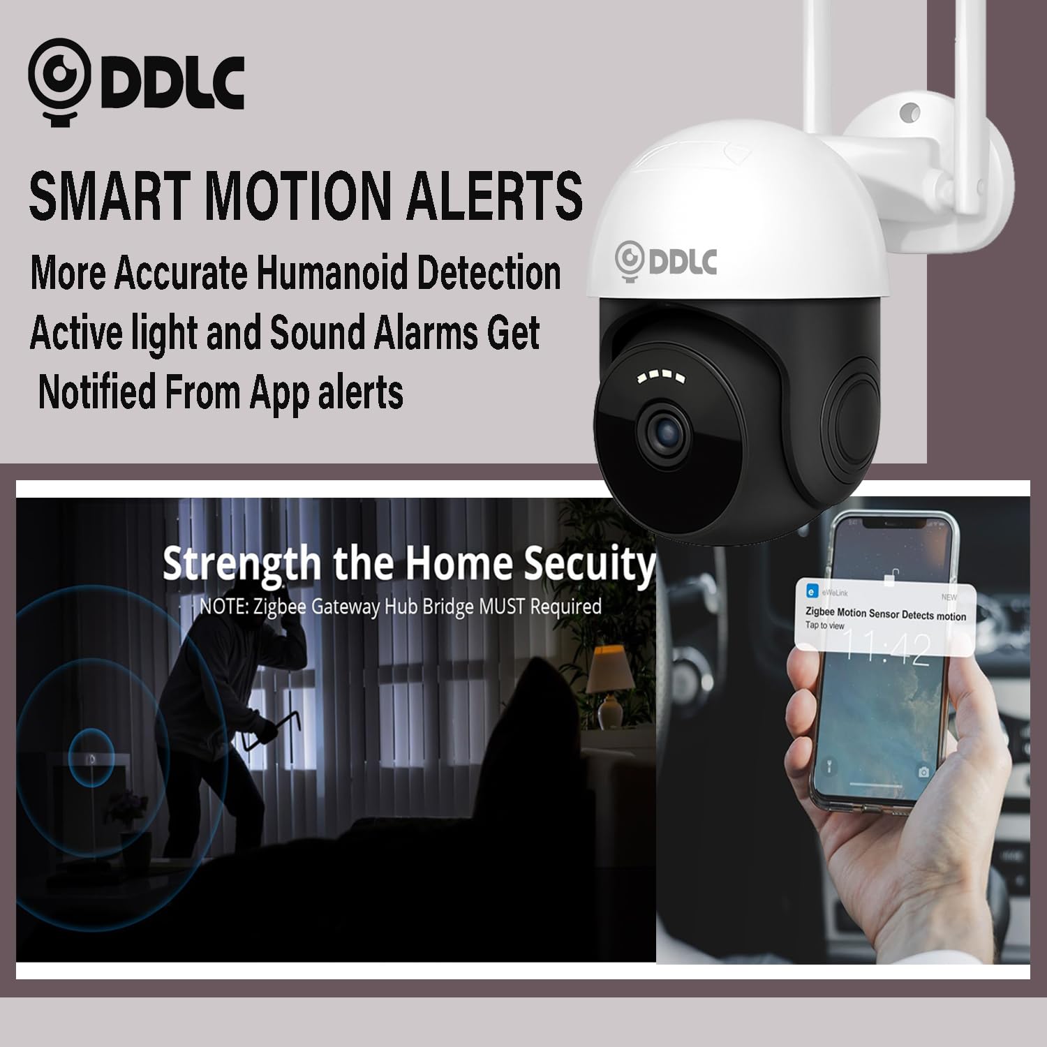 - DDLC :- MOTION DETECTION & BUILT IN ALARM: - With the Smart AI Technology this camera offers custom Motion Detection feature which gives you option to only select the area that you want to select and camera will trigger the alarm whenever there’s movement in that area